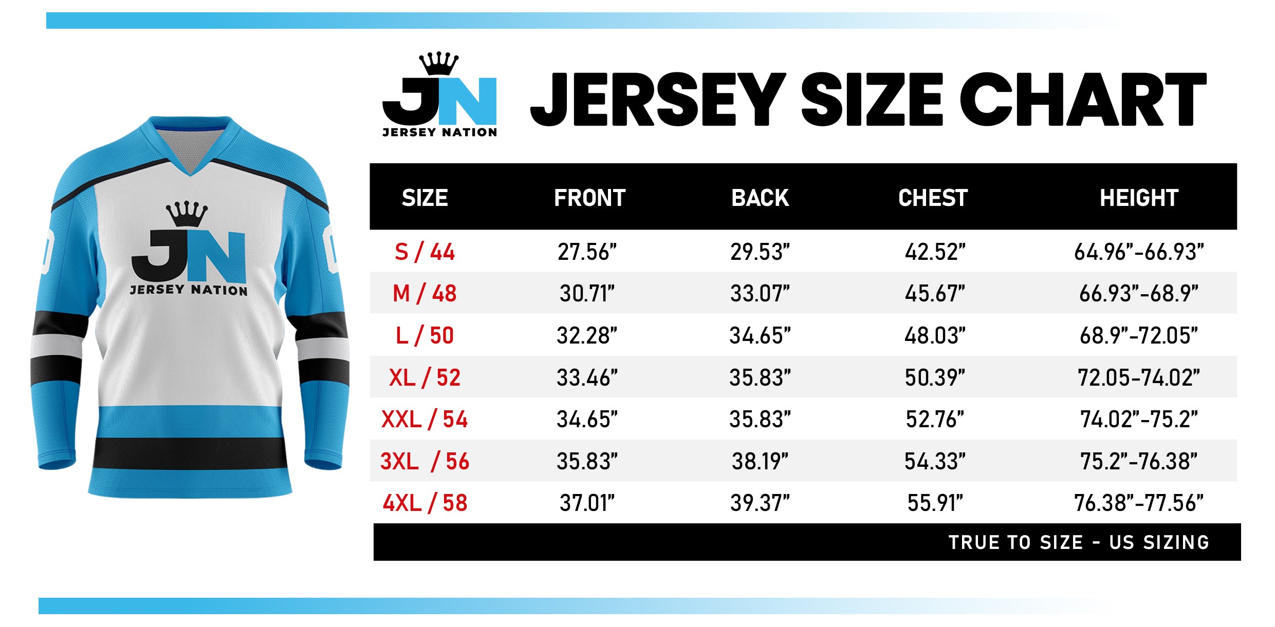 - US Standard Jersey Sizing