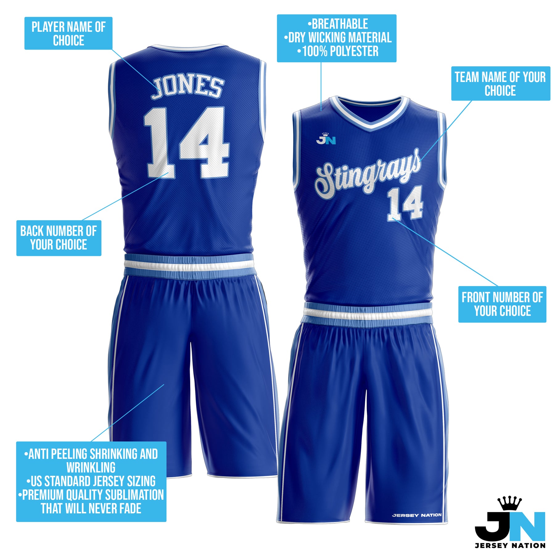 Customize your team's basketball jerseys and shorts with player names for a professional finish. Premium quality, no minimum orders, unbeatable value.