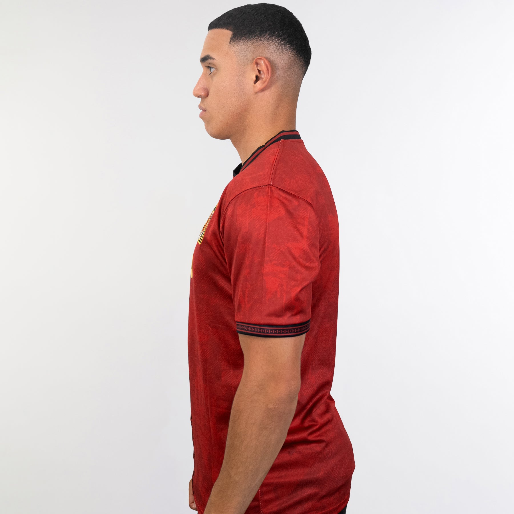 This heritage jersey features a custom crest inspired by the Nemes, the iconic royal headdress worn by ancient Egyptian pharaohs. Hieroglyphics run vertically down the center, connecting the past to the present, while a faint body pattern nods to Egypt’s ancient wonders and timeless legacy. This jersey honors one of the world’s greatest civilizations through powerful design and cultural pride.