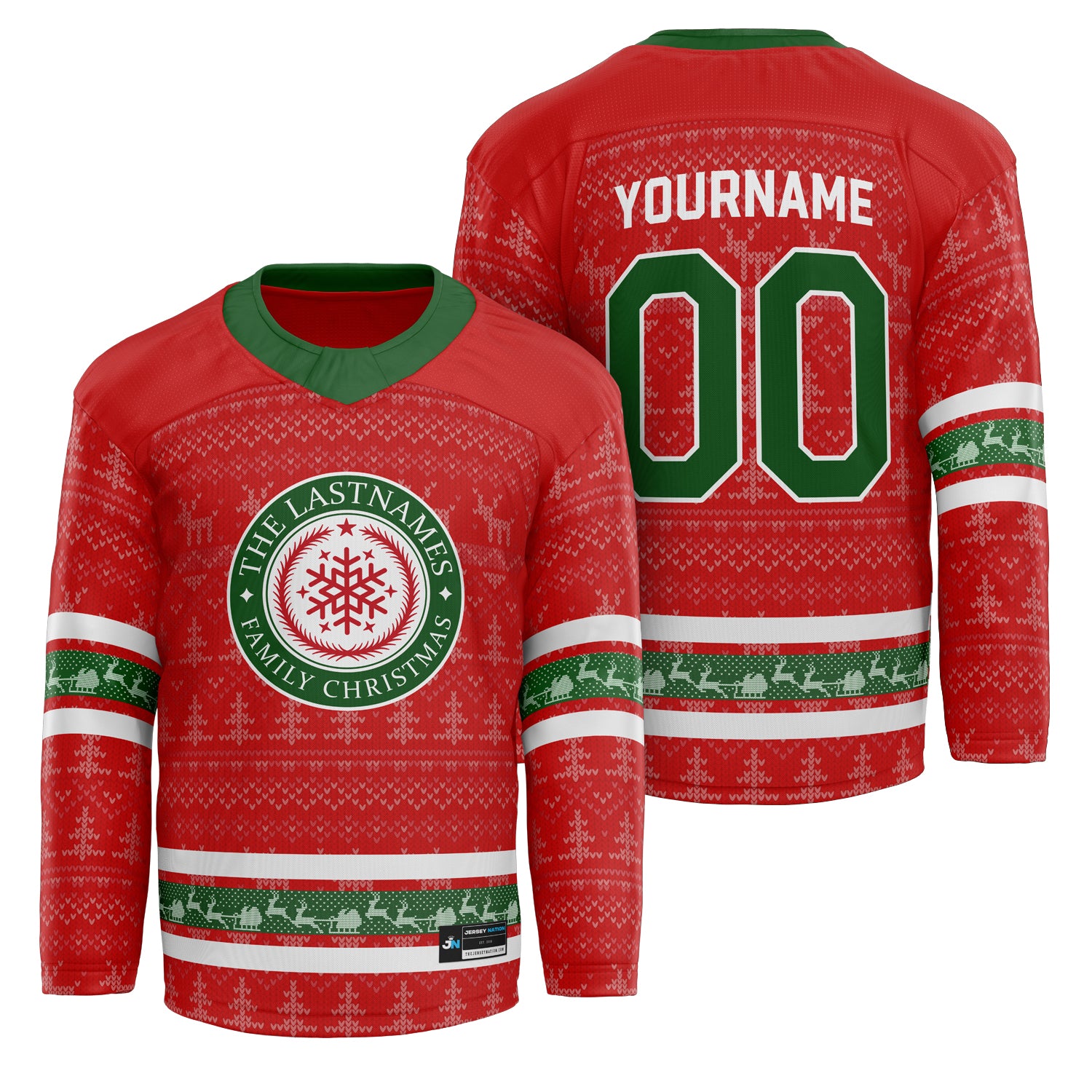Celebrate the holidays in style with our Family Christmas custom Hockey Jerseys. Personalize the front with your family’s last name (or any preferred name), and make it truly yours by adding your own name and number on the back. Built for comfort and designed to last, this jersey is perfect for matching family photos, Christmas parties, or holiday gifts.