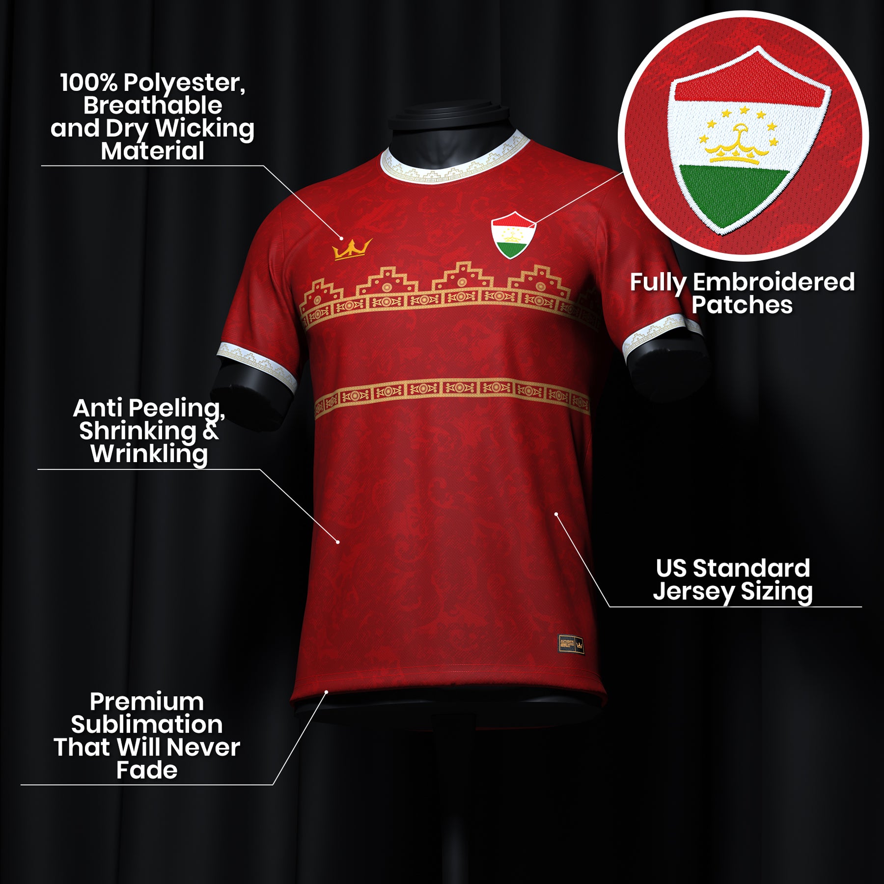 Combine your love of Football by copping our Tajikistan Custom Football Jersey. Customise your own name and number on the back of the jersey, or choose a simple look with no custom name and number! Featuring full embroidery on all patches and premium sublimation!