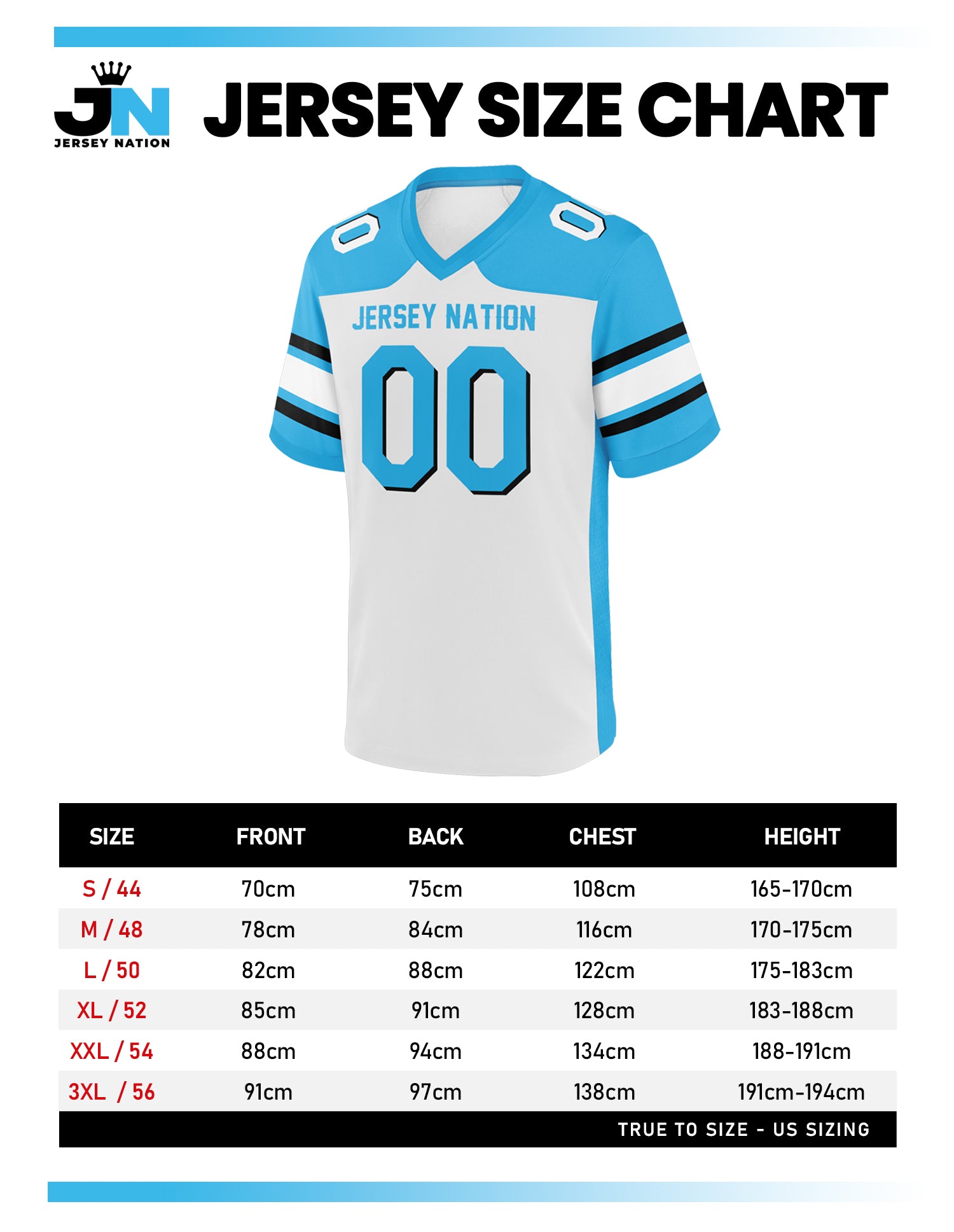 - Fully embroidered graphics: Team, Name, Number detailing, logo