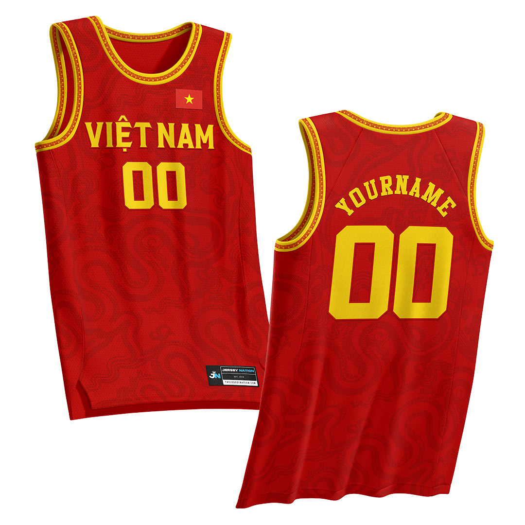 This jersey features “Vietnam” across the chest, with a dragon-inspired body design symbolizing power, prosperity, and good fortune in Vietnamese folklore. The trims are detailed with lotus flower motifs, representing purity, renewal, and cultural interconnectedness. Fully sublimated and true to size, it’s a tribute to Vietnam’s strength, spirit, and heritage.
