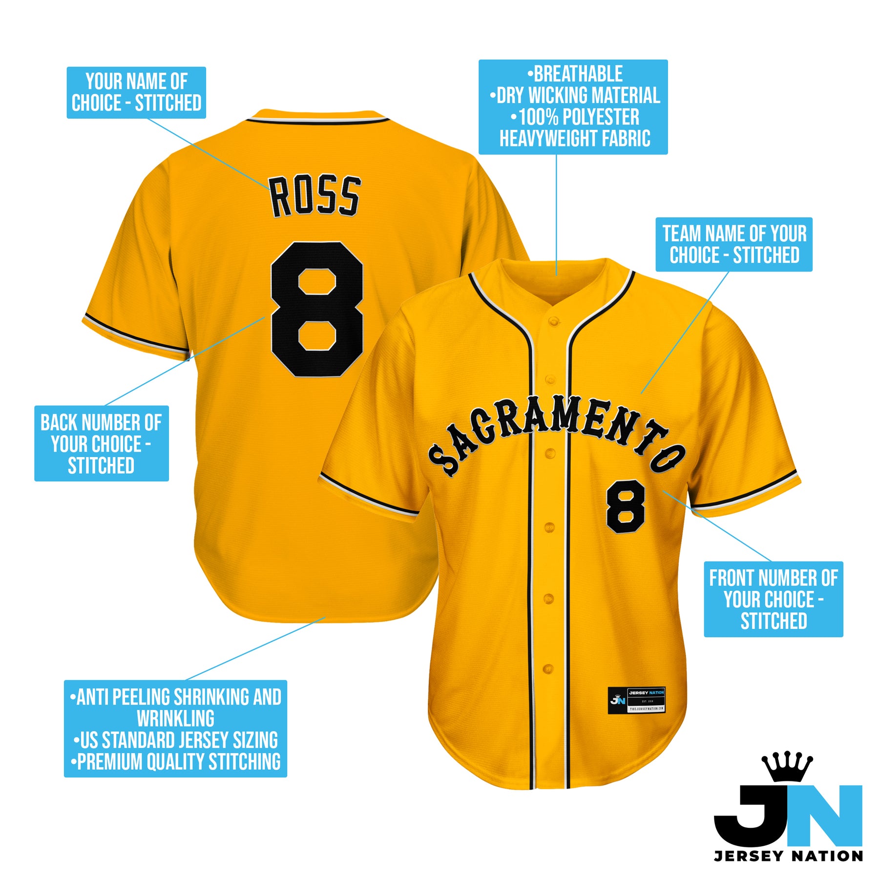 - Embroidered team name, players name and numbers