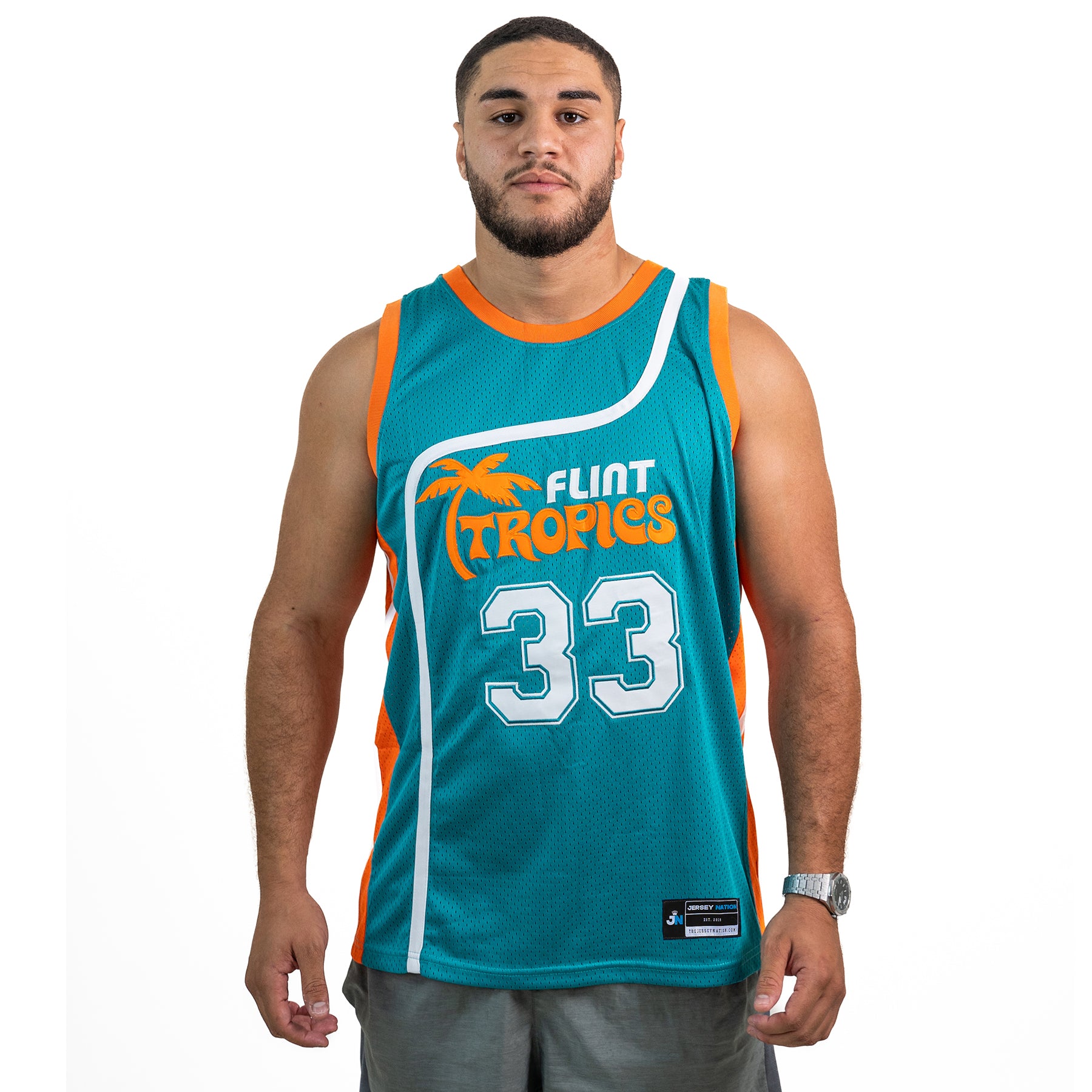 Combine your love of sports, streetwear and nostalgia by copping the Jackie Moon Flint Tropics Basketball Jersey. Plus, it infuses breathable mesh with sweat-wicking technology to help keep you cool and dry whether you’re burning up the court or just keeping it casual around town. Don't sleep on this iconic basketball jersey, available now at Jersey Nation while stock lasts!