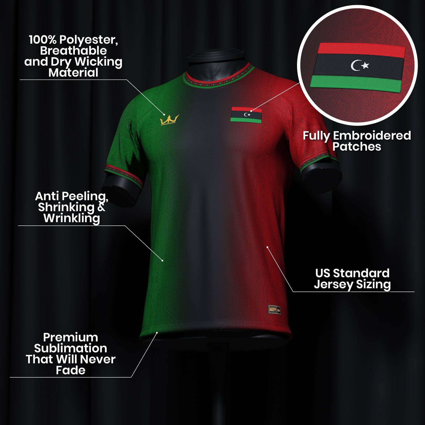 This jersey is an original design inspired by Libyan culture. It is not affiliated with, endorsed by, or associated with any national team, government, or sports federation.