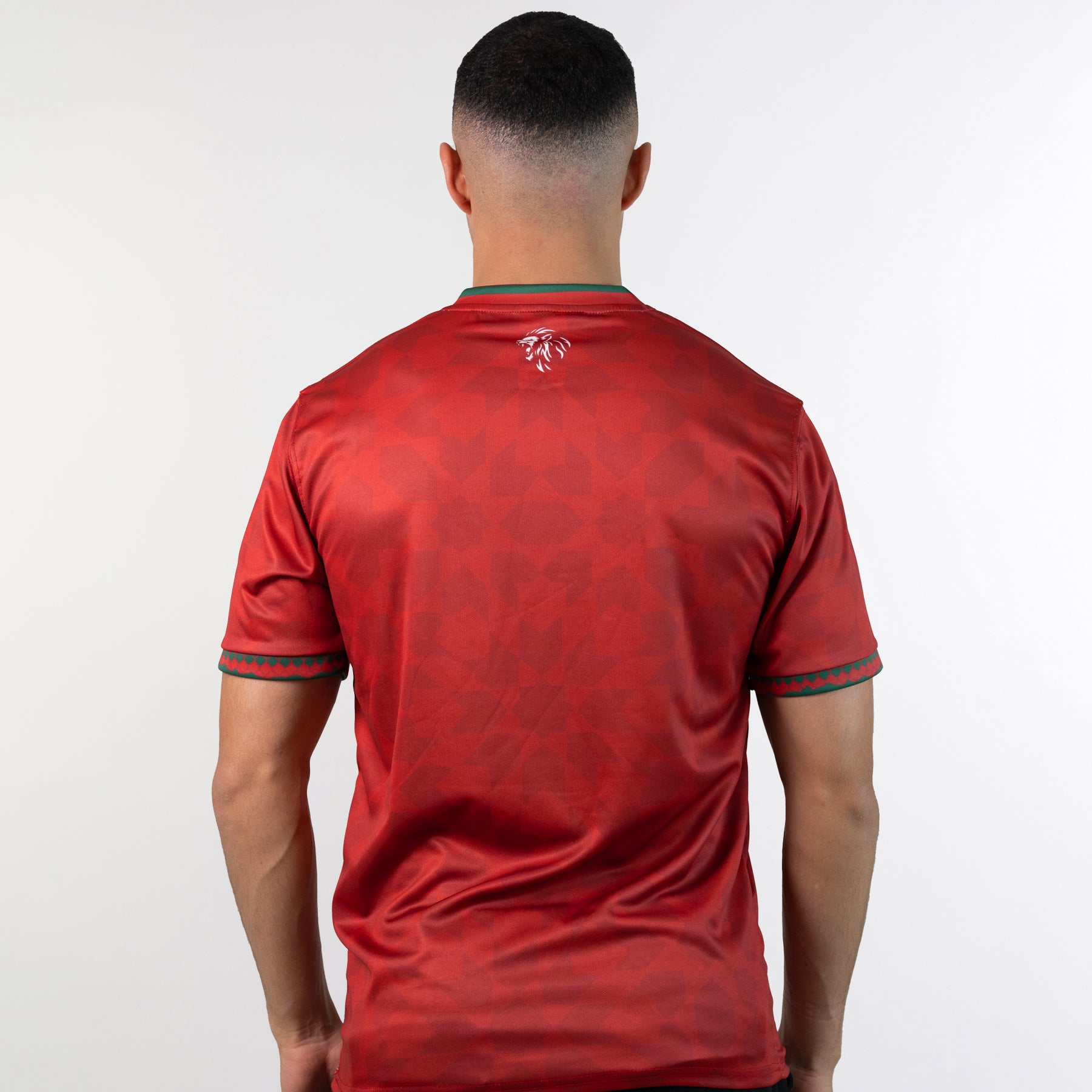 This jersey features a base design inspired by traditional Moroccan Zellij tiles, reflecting the country's legendary craftsmanship and geometric artistry. The cuffs display a silhouette of the Atlas Mountains, grounding the design in Morocco’s natural beauty. On the back neckline, an illustration of the Atlas Lion — a symbol of strength and heritage — completes the piece.