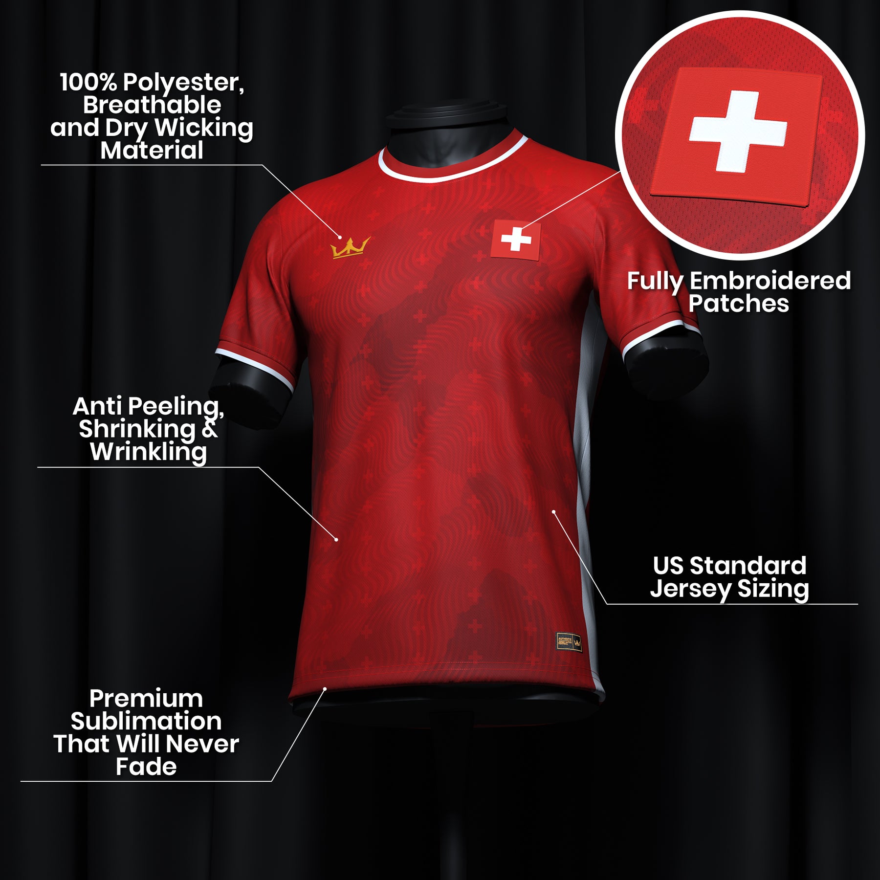 This jersey is an original design inspired by Swiss culture. It is not affiliated with, endorsed by, or associated with any national team, government, or sports federation.