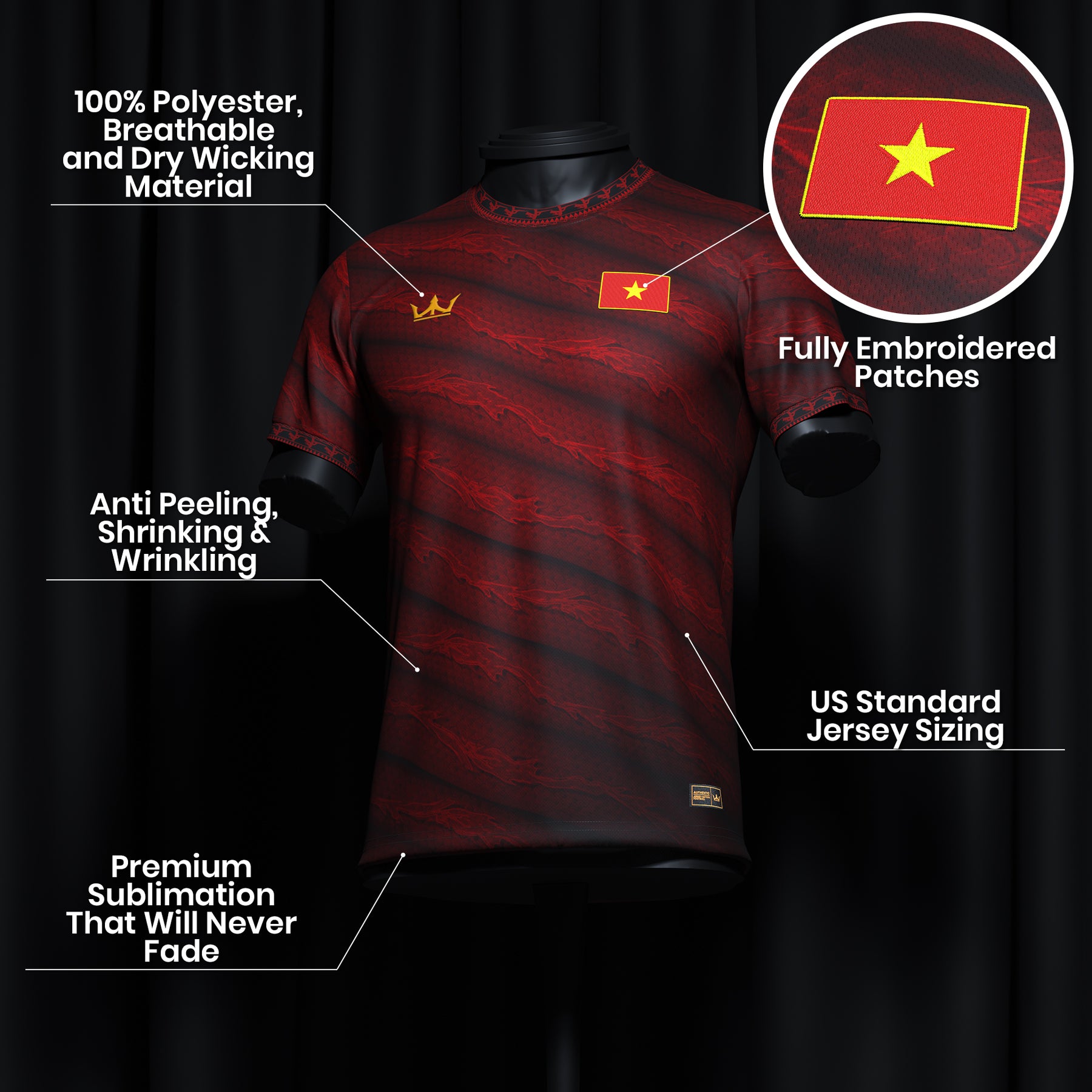 This jersey is an original design inspired by Vietnamese culture. It is not affiliated with, endorsed by, or associated with any national team, government, or sports federation.